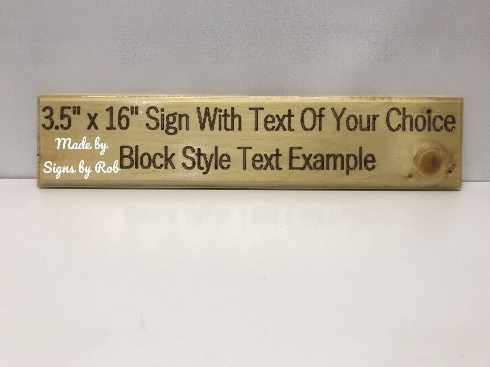 3.5" x 16" custom made sign using text of your choice (Made from Pine wood).