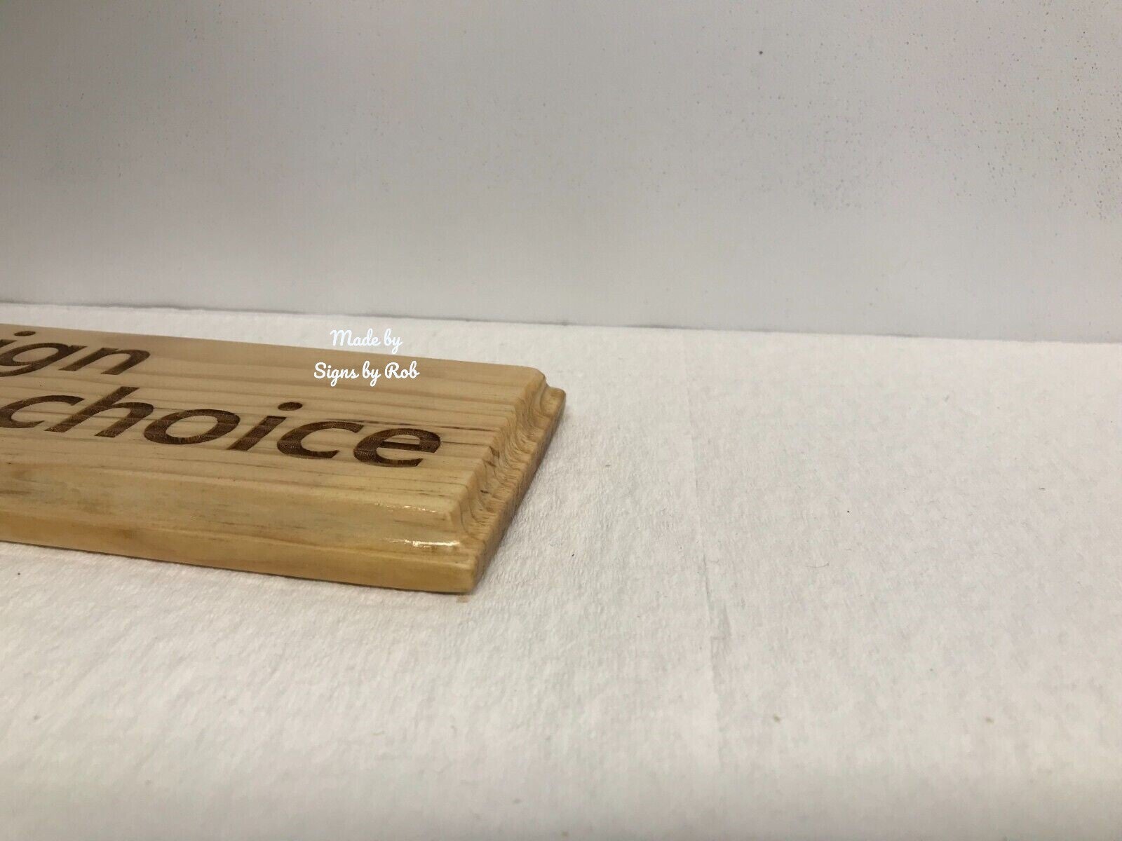 This is a new hand crafted wood sign that can read a saying of your choice. The sign measurements are in pictures above. Size and thickness may vary slightly. We will send you a photo for you to preview of the actual sign before We ship it out. Each sign is made at our store in Beaver Dam WI. Letters are made using a laser engraver, and rest of the sign is hand crafted. Each sign has its own special characteristics such as: wood grain, knots in the wood; minor imperfections in the wood itself, as well as characteristics that may develop during the crafting process.